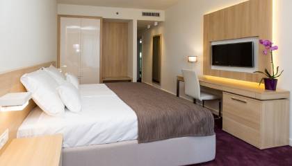 Sobe: 85 soba i 4 deluxe apartmana, klima, LCD Smart TV, WI-FI (besplatno), telefon, ogrtač za kupanje, sef, minibar, kupaonica s tušem; dj. krevetić uz doplatu cca 75 kn dnevno; comfort sobe imaju francuski balkon; superior sobe balkon s vanjskim namještajem.