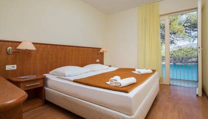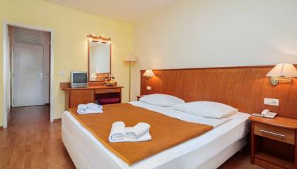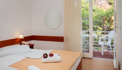 - 20% popusta za jedno dijete od 0-12 godina na osnovnom ležaju u sobi s 1 odraslom osobom; doplata 80 kn dnevno za osobu stariju od 12 godina na pomoćnom ležaju.