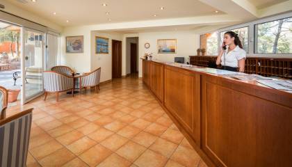 Sobe: dvokrevetne s mogućnošću pomoćnog ležaja, raspoređene u tri paviljona, sat TV, ventilator, morska strana, balkon ili terasa, sobe je moguće rezervirati za najviše 2 odrasle osobe i 2 djece (jedno dijete do 12 god; drugo dijete do 8 god. na ležaju s roditeljima)
