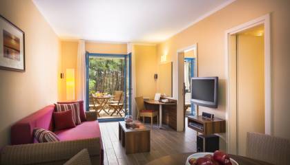 Sobe: klimatizacija i grijanje, kupaonica s tušem, besplatan Wi-Fi, LCD TV, sef na recepciji uz doplatu, sušilo za kosu, telefon; classic soba - za max. 2 osobe, 16-20 m2, classic soba morska strana - za max. 3 osobe, 18-22 m2, sofa kao pomoćni ležaj; superior soba s balkonom - za max. 2 osobe, 16-20 m2, balkon, pogled na parkiralište ili na park; romantic soba s balkonom, pogled more - za max. 2 osobe, 16-20 m2, pogled more s balkonom