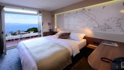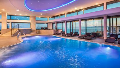 Wellness & Spa: potpuno renovirano za sezonu 2021.!; oaza je smještena na samom vrhu hotela, okružena staklenim stijenama kroz koje se pruža zadivljujući panoramski pogled na morsko plavetnilo i Kvarnerski zaljev; bazen sa grijanom morskom vodom, whirlpool, grijana klupa, relax zona, finska, infracrvena sauna s panoramskim pogledom, turska kupelj; BeautyMa oaza za masaže i beauty tretmane; njega lica i tijela, individualni tretmani i luksuzni sadržaji za parove. Djeci do 16 godina nije dozvoljeno korištenje wellness usluga (masaže I tretmani) i dopušteno im je isključivo korištenje bazena u pratnji odrasle osobe. Djeci do 18 godina nije dopušten ulaz u wellness centar kao ni korištenje spa usluga i tretmana (jacuzzi i saune). Hotel zadržava pravo zatvaranja bazena u slučaju tehničkih potreba.