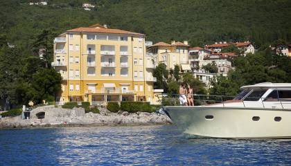 Položaj: u blizini središta Opatije, smješten tik uz more, iznad vlastitog kupališta i šetališta Lungomare koje se proteže obalom u dužini od 12 kilometara.