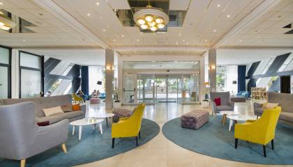 Hotelska ponuda: klimatizirani restoran, pool bar sa sunčanom terasom i pogledom na more, recepcija, wi-fi (besplatan), vanjski bazen (morska voda), terasa za sunčanje, ležaljke (besplatne, ovisno o raspoloživosti), unutarnji bazen (zatvoren od 15.6.-15.9.), fitness, kozmetički salon, info kutak i mala knjižnica, zajednički salon (meeting sala), animacija za djecu (6 x tjedno od 1.6.-1.9., za djecu od 6-12 godina), živa muzika 2 x tjedno, parking (besplatan, ovisno o raspoloživosti)