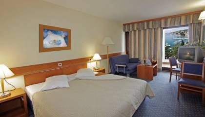 Sobe: sat TV, telefon, klima, WiFi, (besplatno), mini bar, sef, sušilo za kosu, sobe na stranu more i sobe na stranu park imaju pomoćni ležaj/sofu - sofa je namijenjena za dvoje djece do 12 godina ili 1 osobu stariju od 12 godina; balkon u sobama na morsku stranu (dj. krevetić za djecu do 2 g. besplatno, na upit);