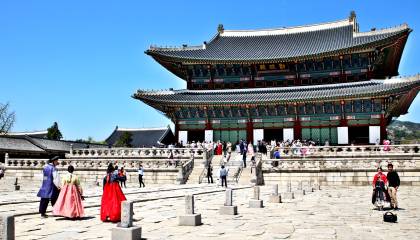 Doručak. Cjelodnevni razgled Seoula. Razgled započinje odlaskom do najljepše i najznačajnije palače Gyeongbokgung (ulaznica u cijeni), jedne od ukupno pet kraljevskih palača, koja je više od 500 godina bila glavna palača. Poznata je po svojoj veličanstvenoj i tradicionalnoj korejskoj arhitekturi, koja odražava konfucijanska načela i estetiku dinastije Joseon. Kompleks palače uključuje brojne građevine poput glavne prijestolne dvorane (Geunjeongjeon), kraljevih stambenih prostorija (Gangnyeongjeon), kraljičinih odaja (Gyotaejeon) i prekrasnih paviljona oko kojih se nalaze uređeni vrtovi i jezerca. U trgovini kraj palače (uz doplatu) možete iznajmiti tradicionalnu korejsku nošnju 'hanbok' i u tome šetati palačom te gledati proceduru smjene straže. Ručak u lokalnom restoranu (u cijeni aranžmana). Posjet Nacionalnom narodnom muzeju koji se nalazi unutar palače, gdje imate priliku učiti o korejskoj povijesti, kulturi i tradiciji. Nakon vraćanja tradicionalnih kostima, nastavljamo razgled do ulice Insadong koja je puna antikviteta, umjetnosti i suvenira te moderne ulice Myeongdong. Dan završava posjetom tržnici Gwangjang, jednim od najboljih mjesta za kušanje autentične korejske ulične hrane. Povratak u hotel. Noćenje.