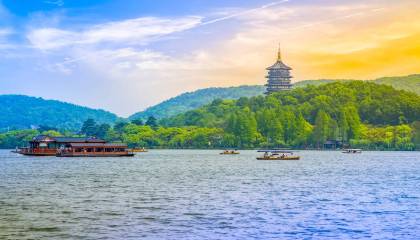 Doručak. Odlazak na jednosatnu vožnju brodićem po Zapadnom jezeru (u cijeni aranžmana) koje je uvršteno na popis svjetske kulturne baštine, jednom od najpoznatijih jezera u Kini koje je posjetio i Marco Polo. Nastavak do Lingyin hrama (u cijeni aranžmana). Usput ćemo se zaustaviti na plantaži zelenog čaja te isti i degustirati. Slobodno vrijeme, povratak u hotel. Večera u restoranu (u cijeni aranžmana). Noćenje.