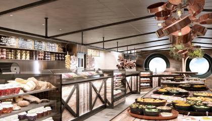 - MSC GRANDIOSA - ima šetnicu u mediteranskom stilu, revolucionarnu značajku koja je zajednička svim brodovima klase Meraviglia, a koja služi kao društveni centar broda. Uz druge specijalizirane restorane, tu se nalazi bar i lounge L'Atelier Bistrot s pozornicom i plesnim podijem, impresionističkim umjetničkim radovima i terasom. Na ovoj nagrađivanoj šetnici održavat će se razne izvedbe i tematske zabave, a tu su i projekcije na još dužoj LED kupoli od 98,5 metara.