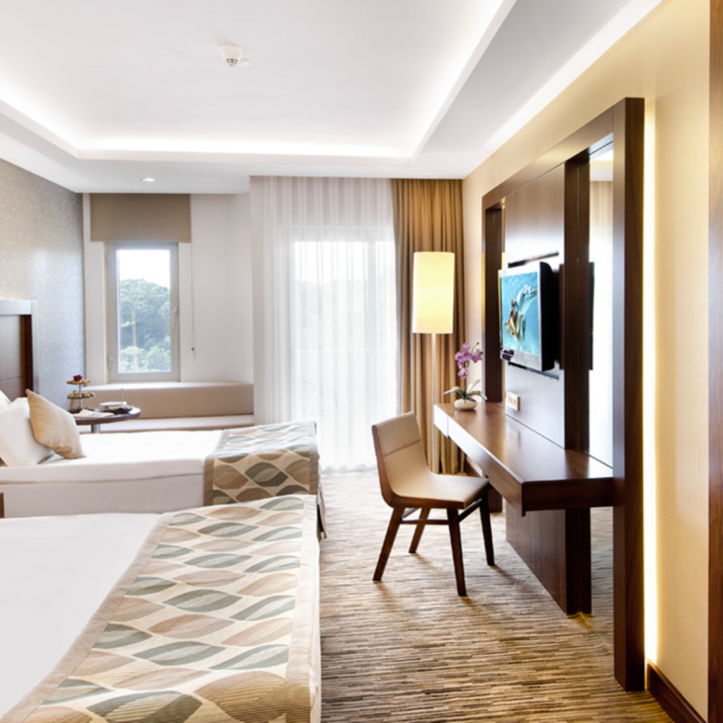 Ponuda: hotelsko naselje; glavna te nekoliko zgrada bungalovskog tipa i bočnih zgrada, usred bogatog zelenila, ukupno 596 soba (također za mladence, luksuzne vile, sobe prilagođene osobama s invaliditetom); restorani (glavni; morski plodovi, turski, talijanski "a-la-carte"), zalogajnice, barovi; dva bazena (četiri tobogana), dva dječja bazena, zatvoreni bazen, jacuzzi; trgovine, dizala (glavna zgrada), bežični internet.