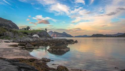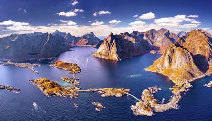 Doručak u obliku breakfast boxa. Odjava iz hotela i odlazak trajektom u ranim jutarnjim satima do Lofota. Nastavak vožnje kroz slikovito, dramatično lijepo Lofotsko otočje koje zahvaljujući blagoj klimi (za koju je „zaslužna“ topla Golfska struja) i izlovu bakalara predstavlja jedan od najpoznatijih fotografskih motiva Norveške. Veličanstveni krajolici u dužini od preko 100 km, s otočićima povezanim mostovima i tunelima, ribarskim lukama, tipičnim crvenim drvenim kućicama, planinama visine do 1000 metara čine boravak na Lofotima posebnim i nezaboravnim! Posjetit ćemo i Svolavaer, glavni grad Lofotskog otočja, koji nudi savršeni spoj prirodne ljepote i kulturne baštine. Tijekom kraće orijentacijske šetnje s voditeljem putovanja, vidjet ćemo izvana i 'lofotsku katedralu', pravim imenom Vågan kirke koja je jedan od simbola otoka. Sagrađena je gotovo potpuno od drveta u stilu novogotike, s jednostavnim, ali elegantnim linijama tipičnim za crkvenu arhitekturu s kraja 19.stoljeća. Priča priču o tamošnjoj dugoj ribarskoj tradiciji, a bila je mjesto gdje su lokalni ribari molili za sigurnost i bogat ulov prije odlaska na more. Nakon pauze za ručak nastavljamo vožnju do grada Harstad koji je smješten na otoku Hinnøya. Ovaj grad ima važnu ulogu kao kulturni i trgovački centar u regiji te je poznat po svojoj bogatoj povijesti, prirodnoj ljepoti i aktivnostima na otvorenom. Smještaj u hotel, večera. Noćenje.