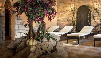 Položaj: u gradu Rabu, uz samo more, otprilike 15 min hoda od centra grada, pogled na starogradsku jezgru RabaHotelska ponuda: hotelski buffet show-cooking restoran Mediterraneo, a la carte Oliva restoran s terasom, snack-bar kod bazena, aperitiv bar, wellness bar, pub, TV salon, unutarnji i vanjski bazen sa slatkom vodom, dječji bazen s toboganima, wellness centar, kozmetički i frizerski salon, trgovina, solarij, fitness zona, besplatan WiFi, internetski kutak, besplatan parkingSobe: standard i superior sobe, junior i obiteljski suite-ovi; klimatizirane, telefon, sat TV, mini bar, sef, sušilo za kosu, besplatan WiFi, balkon, kupaonica s tušem/kadom, wcPrehrana: buffet doručak i večera s uključenim bezalkoholnim pićima, obavezna doplata za novogodišnju večeru prema cjeniku