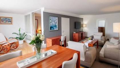 superior apartman, pogled jezero: bračni ležaj, treći ležaj 160 x 200 cm, dnevni boravak, kupaonica s kadom, hotelska kozmetika, sušilo za kosu, LCD TV, WiFi, sef, mini bar (u pojedinim jedinicama), zatvorena lođa;