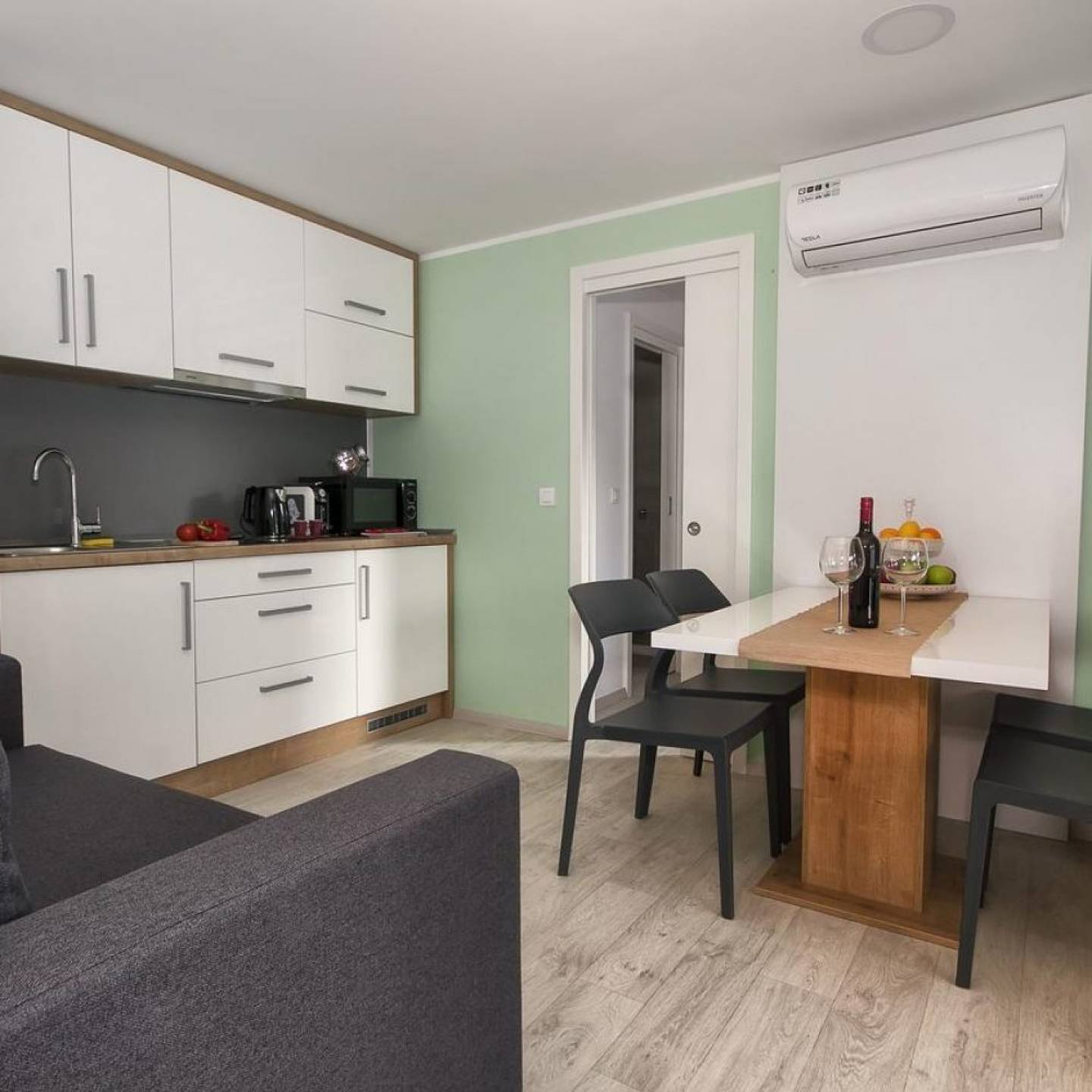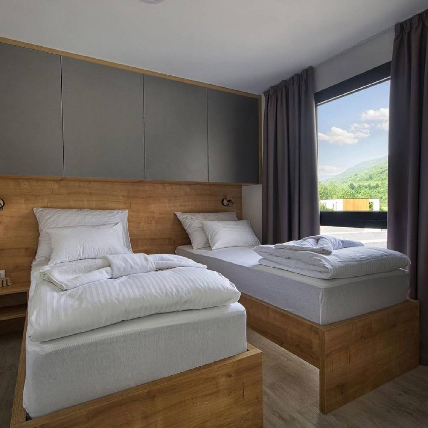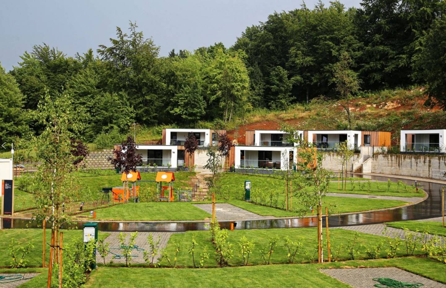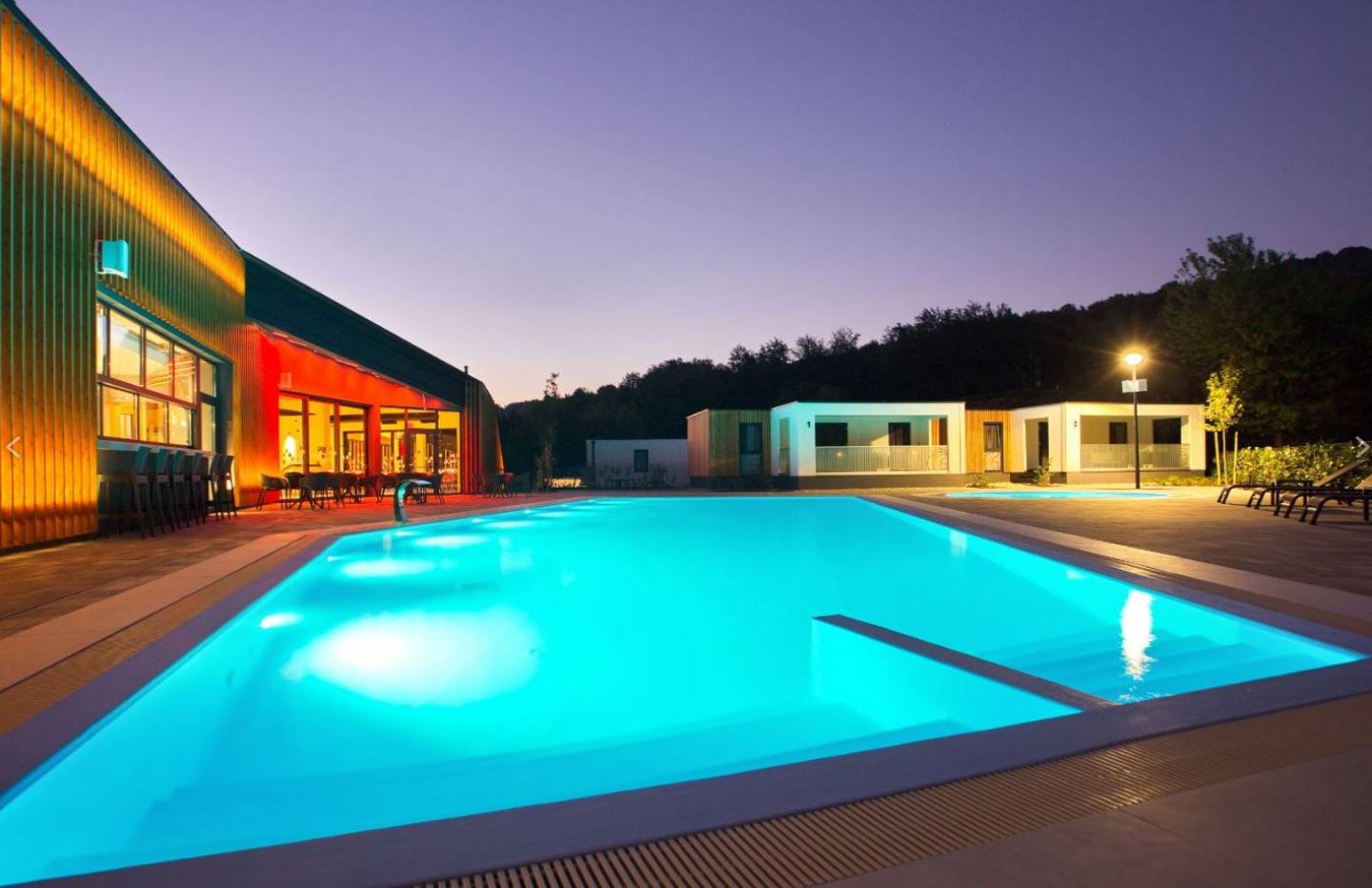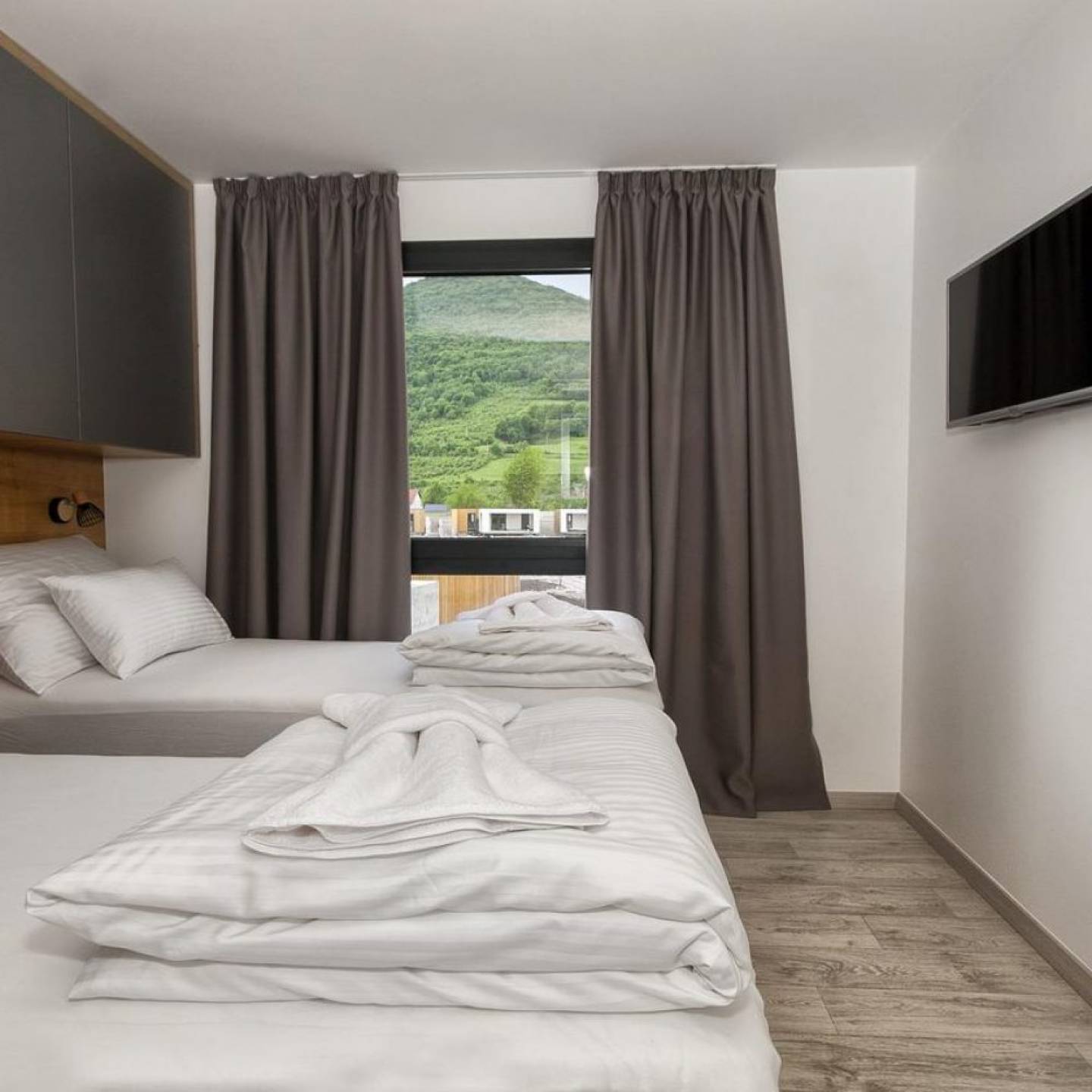 Mobilne kućice: moderni stil uređenja, dvije spavaće sobe sa individualnim kupaonicama, zajednička kuhinja, kuhinja s hladnjakom, pločom za kuhanje, mikrovalnom pećnicom, tosterom i aparatom za kavu, vanjska terasa, Premium Family za 6 osoba (36 m2), Deluxe Family za 6 osoba (36 m2), flat screen TV, sušilo za kosu, WiFi u kućicama,