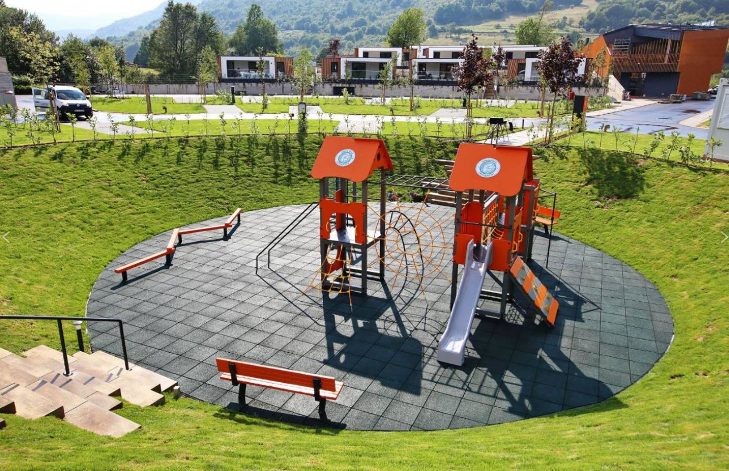 Deluxe Family: 36 m2, za max. 6 osoba, 2 spavaće sobe, kuhinja, 2 kupaonice s tuš kabinom, TV, terasa, posteljina i ručnici, kućice su smještene uz bazen i dječje igralište s luksuznijom garniturom na terasi