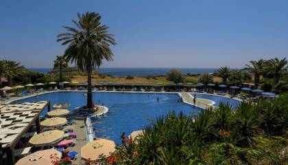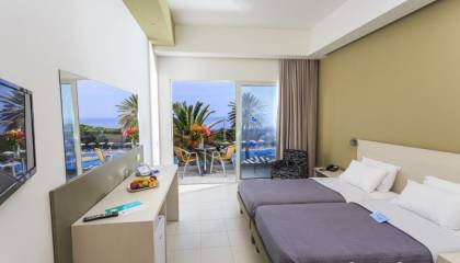Na mirnom području Ladiko, na uzvisini, otprilike 650 m od plaže Ladiko (mini bus 3x dnevno besplatno) i 850 m od znamenite plaže Anthony Quinn, 3 km od mjesta Faliraki, 17 km od mjesta Rodos i 15 km od zračne luke. Autobusna stanica ispred hotela.