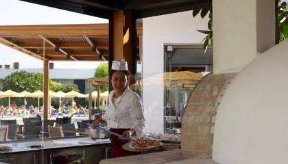 Ponuda: restorani (glavni; talijanski, azijski, meksički, taverna »a-la-carte«), slastičarnica, barovi; dva bazena s morskom vodom, dječji bazen, unutarnji bazen; masaže, razni tretmani; trgovinice, internet (doplata) i tv kutak, bežični internet; mini klub; tenis, joga, gimnastika u vodi, ples, biljar, stolni tenis, bicikliranje; animacija.
