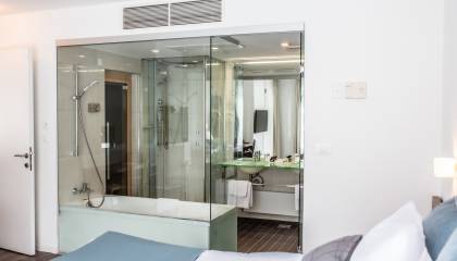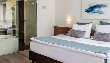 Sobe: standard- kupaonice sa staklenom stijenom, klima, telefon, sef, mini bar, sušilo za kosu, ogrtač i papuče u sobi za svakog gosta, besplatni internet i TV-a s digitalnom videotekom; superior - dodatno imaju terasu